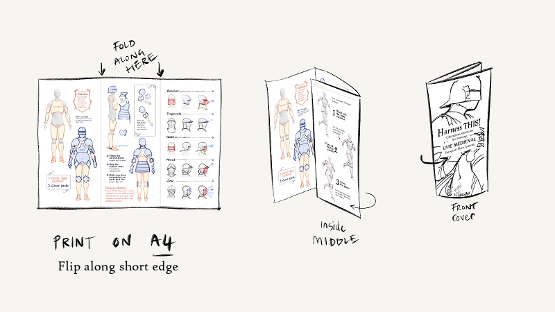 Second PDF: a single page instruction on how to fold the tips sheet into a leaflet, as well as a list of suggested resources to help you further your knowledge about late medieval armour.