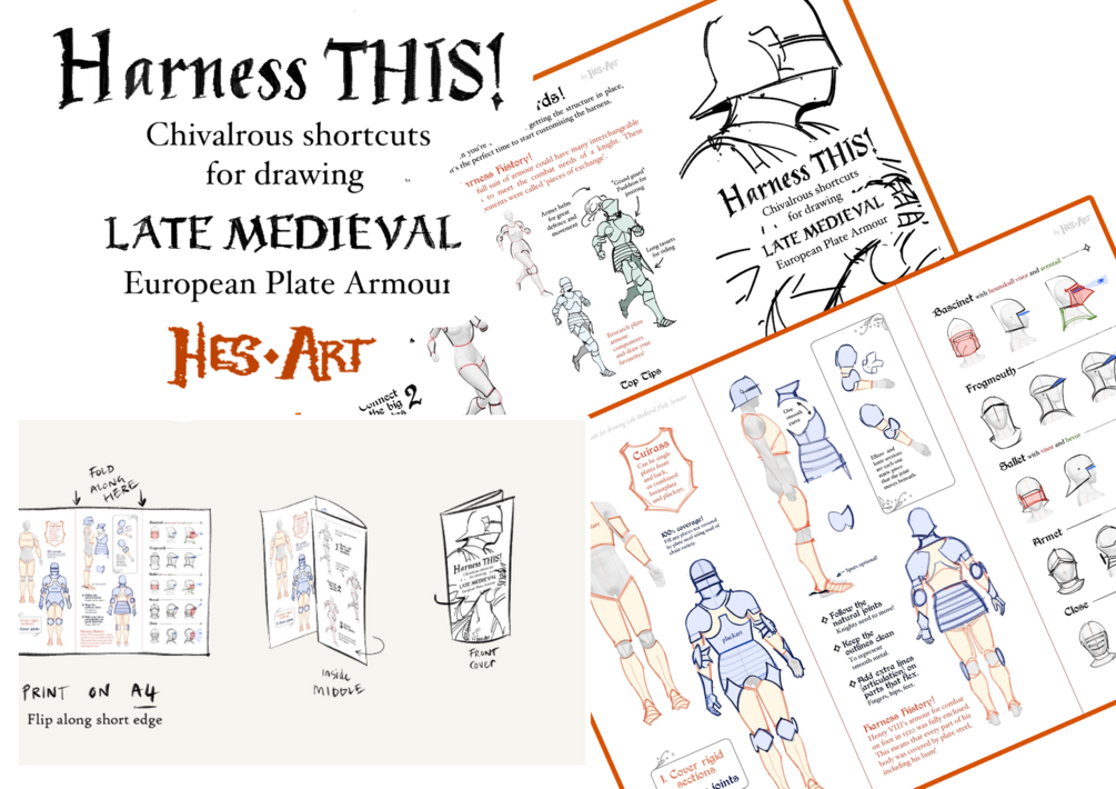 Some tips and tricks for drawing Late Medieval suits of plate armour (also known as harness!). This downloadable file includes two PDFs.